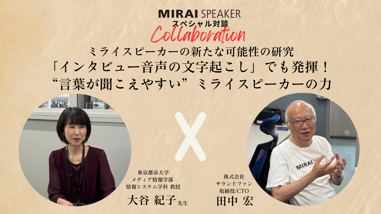 2025年10月1日より、株式会社サウンドファンは 「株式会社ミライスピーカー」 に社名を変更いたしました。 そのため、2025年9月30日以前に公開された記事や資料には旧社名(株式会社サウンドファン)の記載がございます。あらかじめご了承ください。