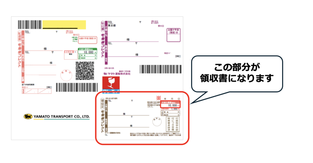 下記のような宅配便の金額が記載された領収書伝票を大切に保管しておいてください。