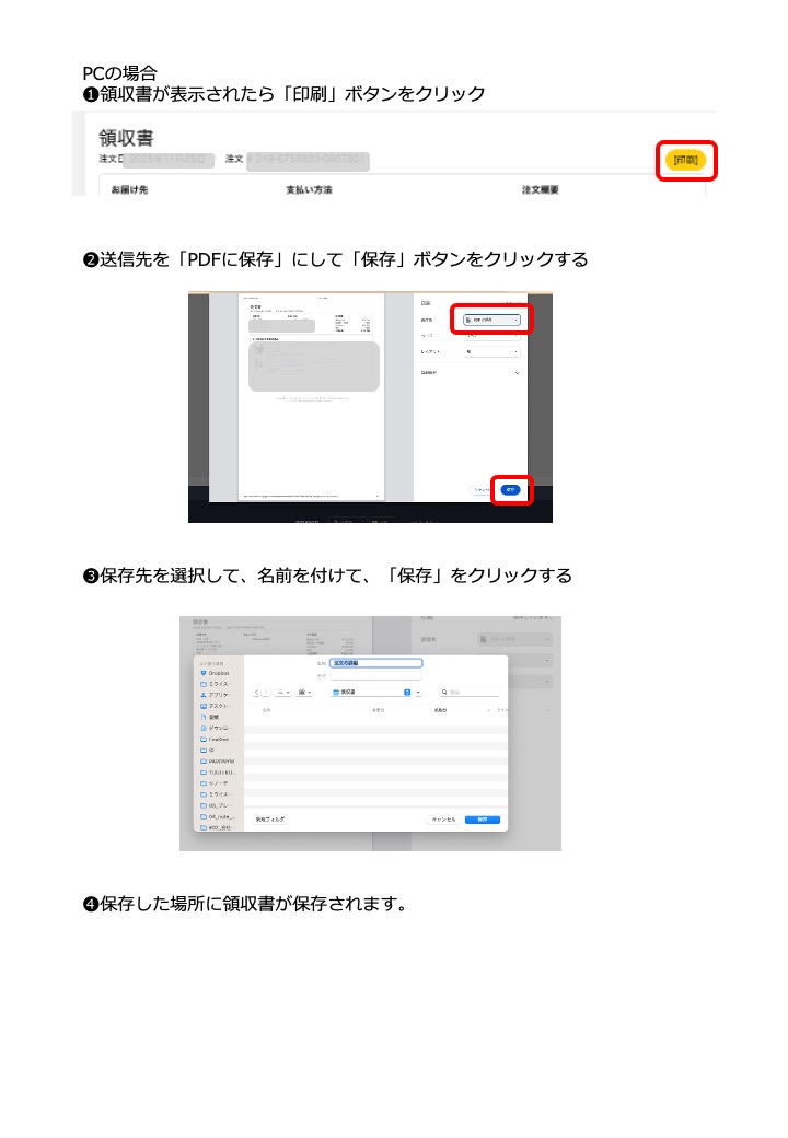 Q. 領収書は表示できたけれど、ファイルとしとして保存するやり方がわからない