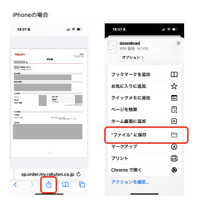 → 画面上部の共有ボタン(↑)から「ファイルに保存」を選択すると、