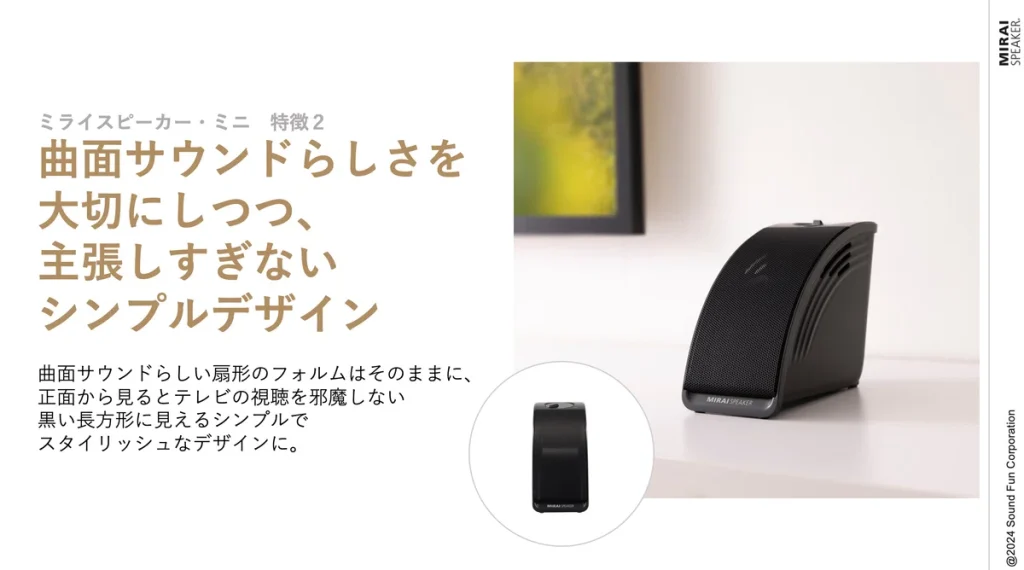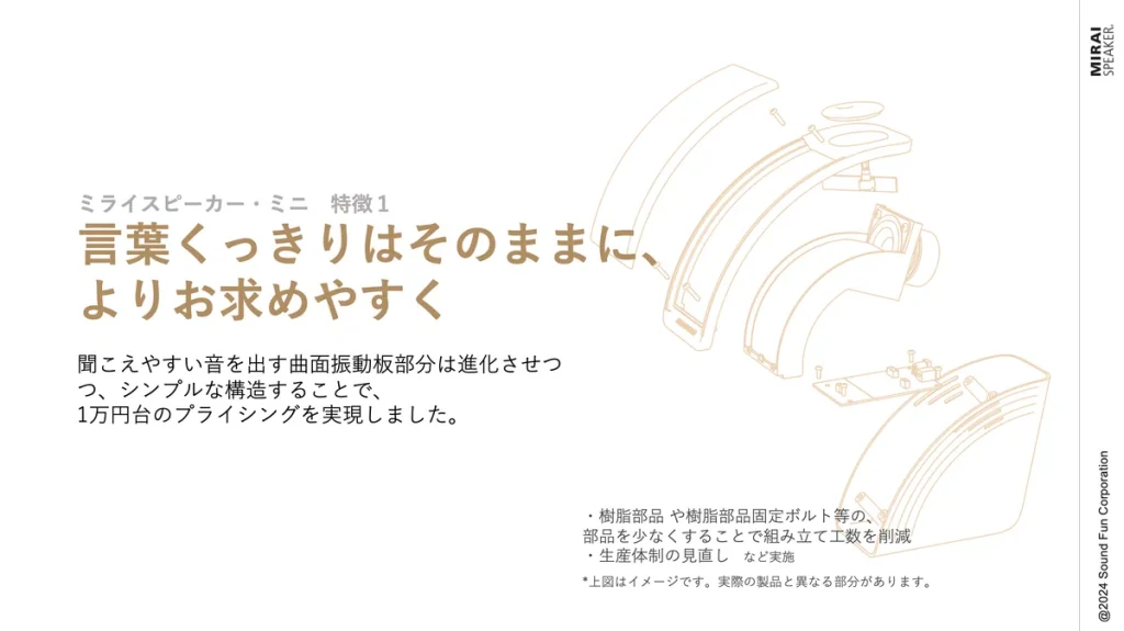 そこで、聞こえはそのまま、品質は妥協せず、進化できるポイントは進化させて1万円台の価格としたミライスピーカー・ミニを発売しました。