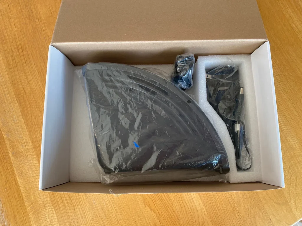 箱を開けると、スピーカーと音声ケーブルと電源ケーブル、3つがわかりやすく梱包されていて、接続するまえの準備もカンタンです。