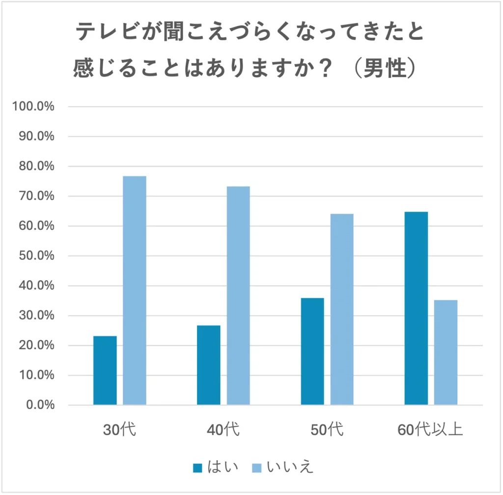 30代40代でも2~3割の方が、60代以上になると、半数以上の方が「テレビが聞こえづらい」と感じていらっしゃいます。
