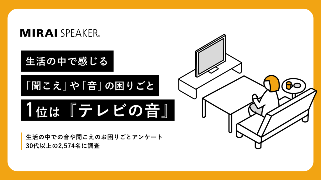 ミライスピーカーは、テレビの音量を上げずに、言葉がくっきりするスピーカーです。特に加齢により聞こえづらくなってきた方のテレビ視聴を快適する用途として、多くの方にご愛顧いただき累計販売台数20万台を突破いたしました。一方で、今回の調査結果から、30代・40代の方でも、生活音の影響や、BGMに埋もれるセリフなどによって、テレビの音が聞き取りづらいことが多くあることがわかりました。ミライスピーカーは、テレビの言葉をくっきりするニーズにお応えできる製品として、幅広い年代の方におすすめしていきたいと考えます。