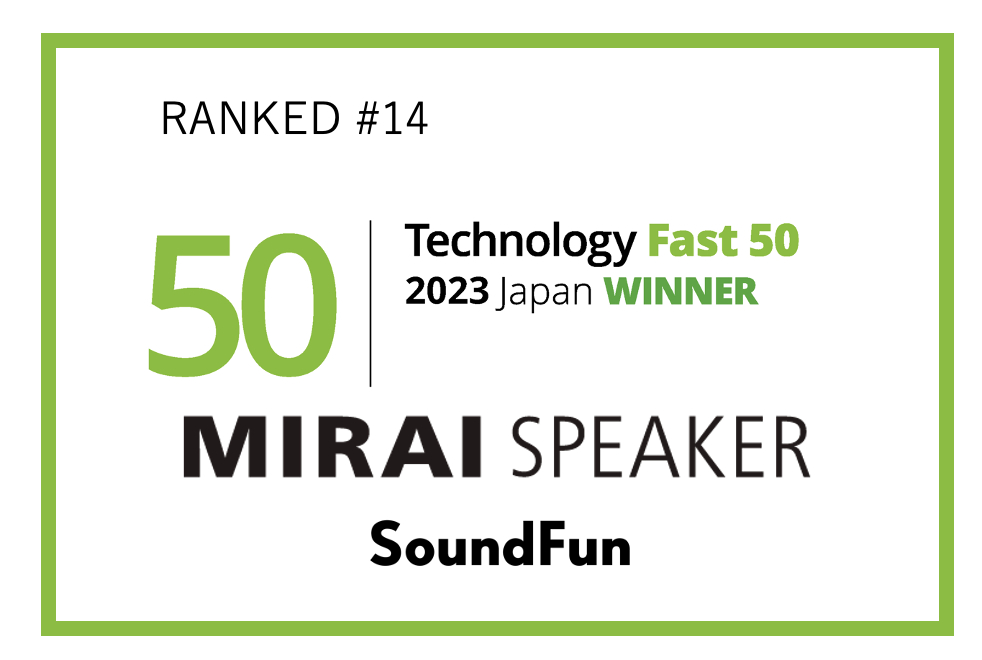 「100年のスピーカーの歴史」に聞こえにくさの解消という新しい視点を提示し、特許技術「曲面サウンド」をもってサウンド領域に新たな価値と可能性を提供する株式会社サウンドファン(所在地:東京都中央区、代表取締役社長:山地浩、以下「当社」)は、デロイト トーマツ グループが発表したテクノロジー・メディア・通信(以下、TMT)業界の収益(売上高)に基づく成長率のランキング、「Technology Fast 50 2023 Japan」において、過去3決算期の収益(売上高)に基づく成長率303.2%を記録し、50位中14位を受賞いたしました(http://www.deloitte.com/jp/fast50)。