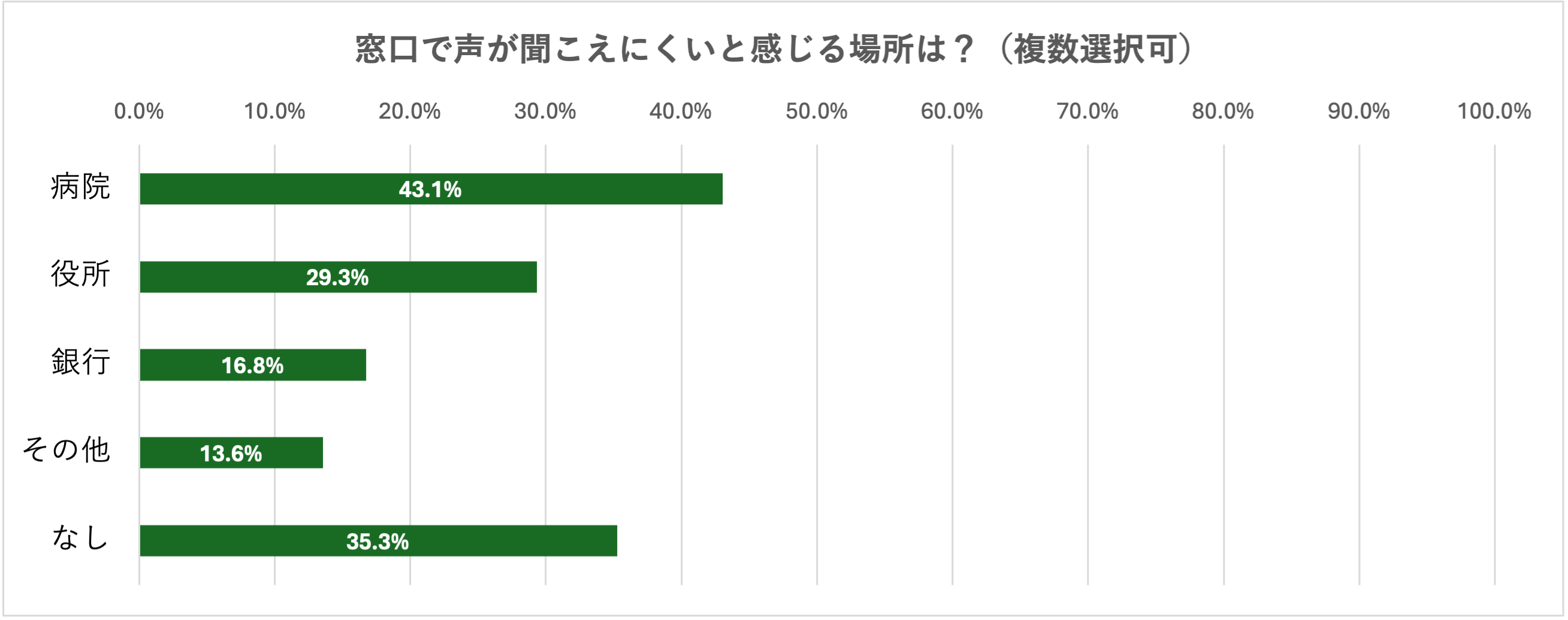 • 窓口の声が聞き取りづらい場所は『病院』が最多で43.1%