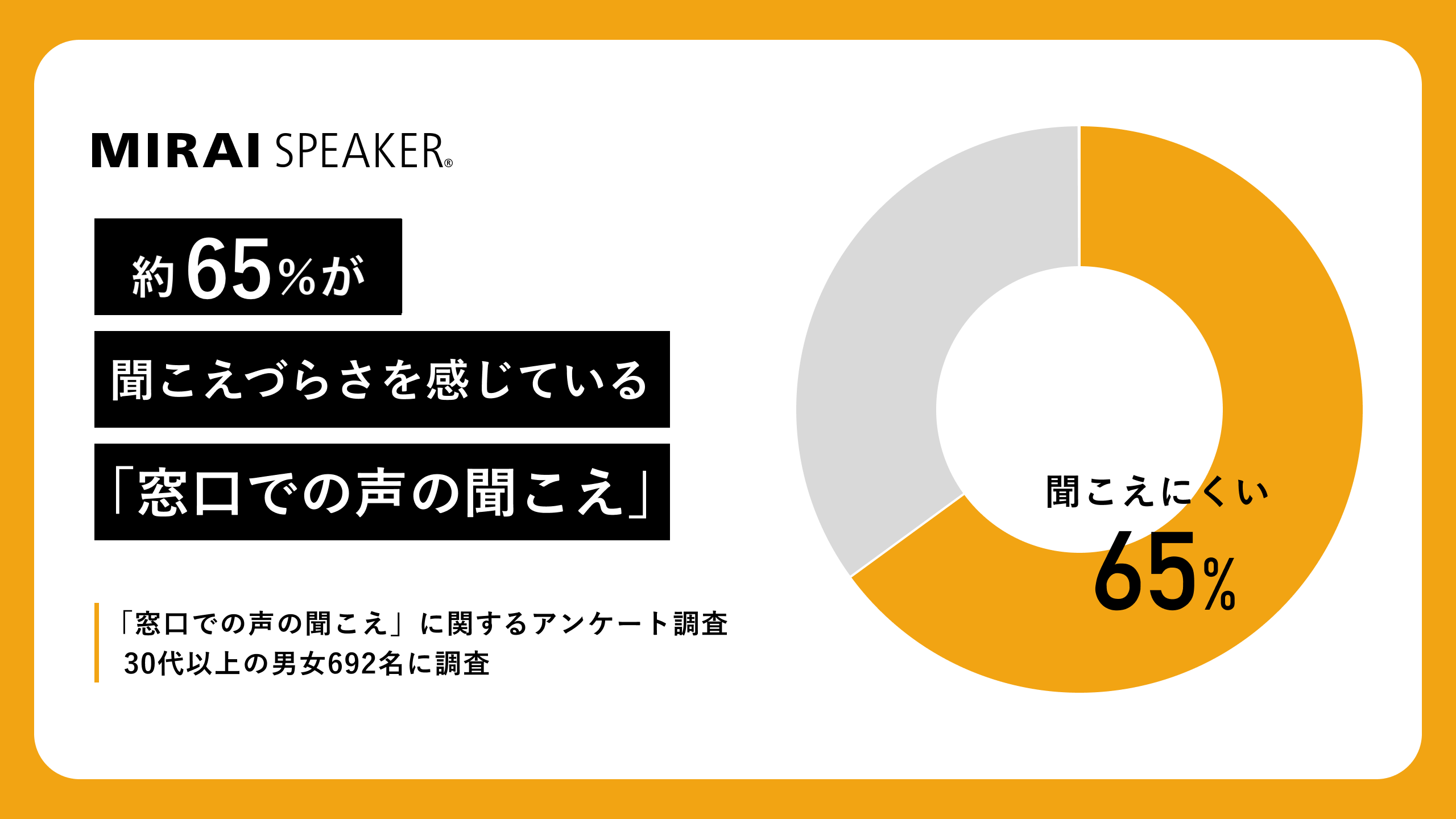 「100年のスピーカーの歴史」に聞こえにくさの解消という新しい視点を提示し、特許技術「曲面サウンド」をもってサウンド領域に新たな価値と可能性を提供する株式会社サウンドファン(所在地:東京都中央区、代表取締役社長:山地浩、以下:サウンドファン、以下「当社」)は、30代以上の男女692名に、窓口での声の聞こえに関する調査を実施し、その結果を発表いたします。