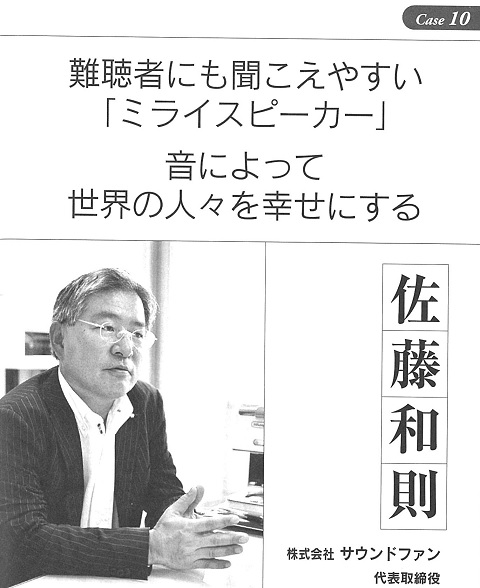 サウンドファンは、書籍中の25社のうちCase10 『難聴者にも聴こえやすい「ミライスピーカー」音によって世界を幸せにする』で紹介いただいています。