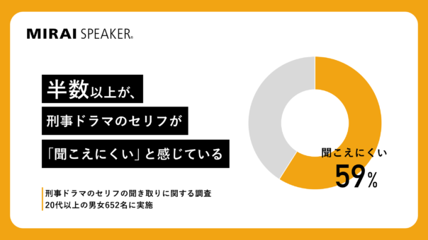「100年のスピーカーの歴史」に聞こえにくさの解消という新しい視点を提示し、特許技術「曲面サウンド」をもってサウンド領域に新たな価値と可能性を提供する株式会社サウンドファン(所在地:東京都中央区、代表取締役社長:山地浩、以下:サウンドファン、以下「当社」)は、20代以上の男女652名に、刑事ドラマのセリフの聞き取りに関する調査を実施し、その結果を発表いたします。