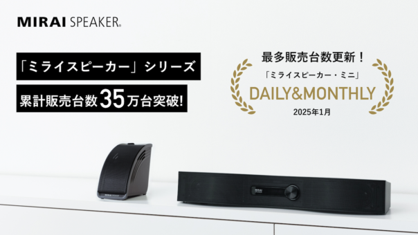 【プレスリリース】「ミライスピーカー」シリーズ累計販売台数35万台突破!2025年1月「ミライスピーカー・ミニ」デイリー&マンスリー最多販売台数を更新