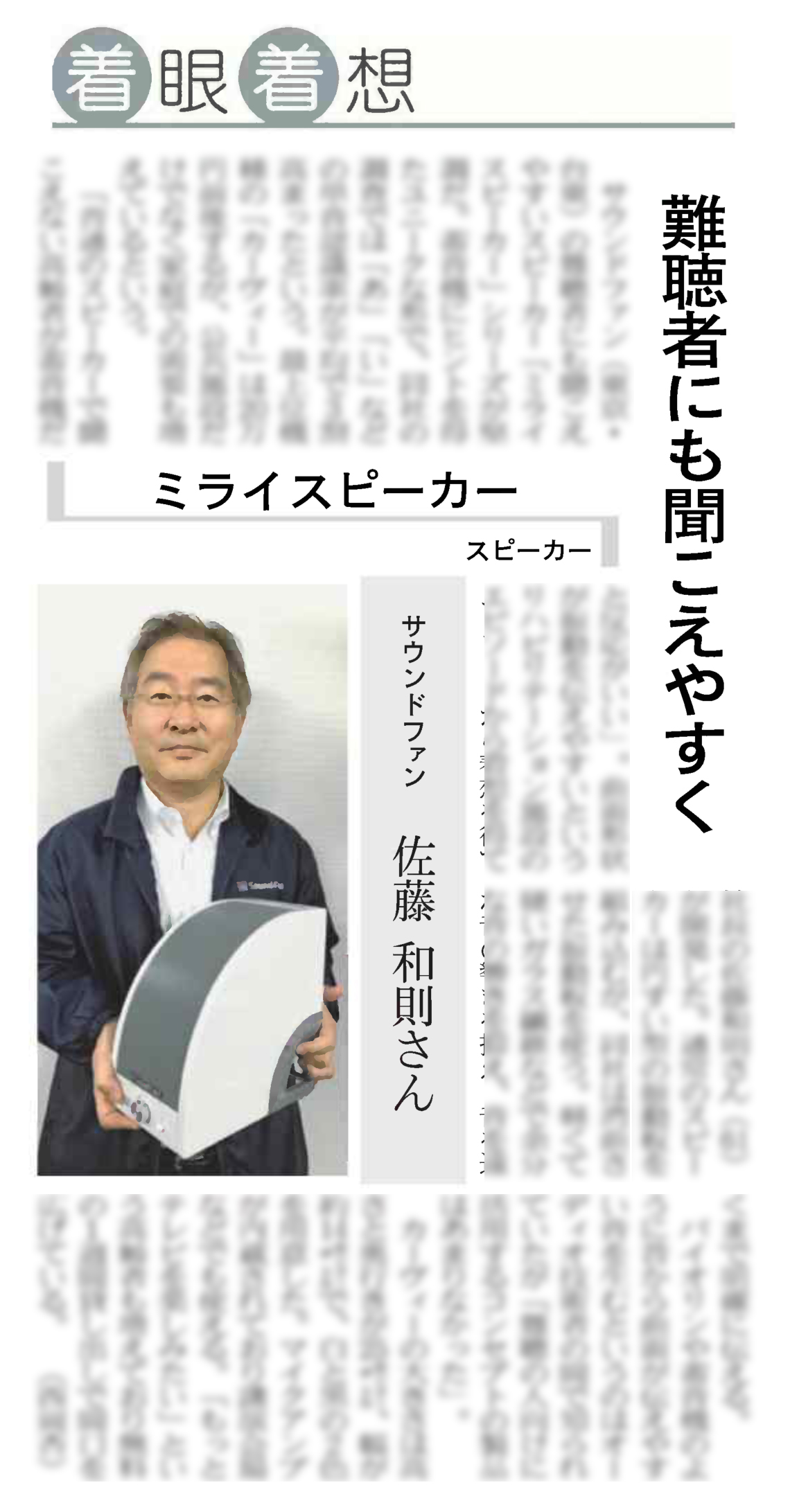 『サウンドファン佐藤和則さん―ミライスピーカー、スピーカー、難聴者にも聞こえやすく(着眼着想)』