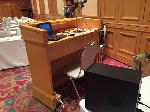 約120名のご参加者はほぼ高齢の方でしたが、別途ハンドマイクに接続されていた会場常設300Wのスピーカーより、10Wのミライスピーカーの方が聞き取りやすいというありがたいお声をたくさんいただきました。