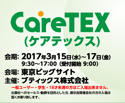 【展示会】<3月15日〜17日>CareTEX2017(第3回国際介護施設産業展) に出…