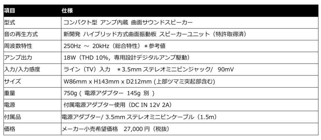 100年の音の歴史を変えた、世界初の特許技術『曲面サウンドTM』搭載。